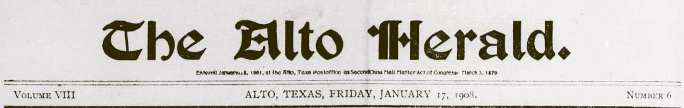 Back in 2012, Virginia Singletary wanted more people to know about and take advantage of the newly digitized archives of the Alto Herald newspaper. Thanks to a generous grant from the Tocker Foundation, these snapshots of life in Alto over the last 100 years had become easily available to anyone with a computer or even a phone. To spread the word, she began writing columns for the Cherokeean, each one mining the old Heralds for information and opinions on some topic of the day.